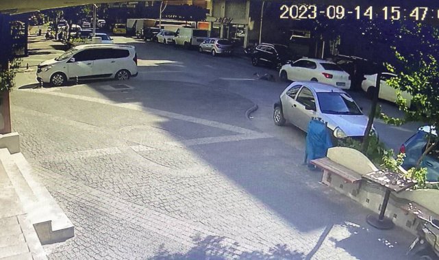 Kaza anı ise bir işyerinin güvenlik kamerasına saniye saniyesine yansıdı. Görüntüde, otomobilden inen çocuğun aracın önünden sağa sola bakmadan aniden yola çıktığı, motosikletin çarpmasından kurtulduğu ama otomobilin ise kurtaramayarak çarptığı anlar yer aldı.