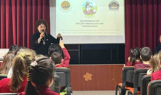 Antandros Derneği Başkanı Gülçin Cömert ve beraberindeki heyet, Edremit'te ilkokul öğrencileriyle bir araya gelerek Antandros Antik Kenti ve kültürel miras konularında bilgilendirme yaptı.