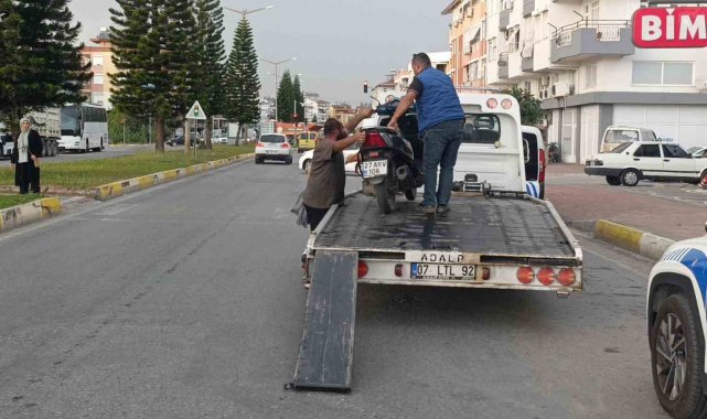 Antalya'nın Manavgat ilçesinde polis ekiplerince gerçekleştirilen asayiş ve trafik uygulamasında ehliyetsiz yabancı uyruklu motosiklet sürücüsü ve araç sahibine toplam 38 bin 347 TL ceza kesilirken, motosiklet trafikten men edildi.