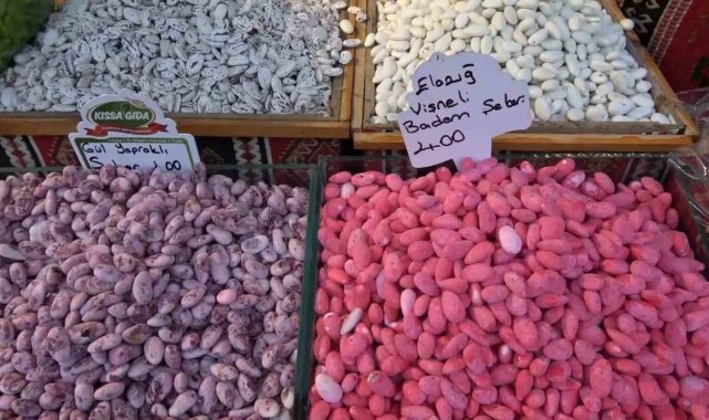 Tarihi Almacı Pazarı'nda çeşit çeşit badem şekeri müşterileri bekliyor