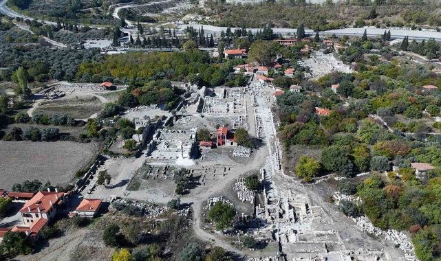 Kazı Başkanı Prof. Dr. Söğüt, "Gelece Miras projesi kapsamında o köy meydanındaki çalışmalarımızı da biz yürütüyoruz. O Menteşe Beyliği, Osmanlı ve Erken Cumhuriyet dönemine ait o dükkânların hepsini kendi özgün halleriyle ayağa kaldırıyoruz. Ve bunların hepsini tek tek en ince pencerelerine varıncaya kadar eski fotoğraflardan, eski bilgilerden, o evde yaşayan insanlarla sohbetlerden çıkardığımız sonuçlara bağlı olarak birebir bunları çiziyoruz. Ve gelecekte de bu Osmanlı dönemindeki o köy meydanının tamamını tekrar yaşatıyor olacağız. Ama ne yapacağız? Osmanlı döneminde yaşayan o köy meydanını günümüzün şartlarına uygun olarak tekrar düzenleyeceğiz. Yani siz oraya girdiğinizde işte demircisiyle, bakırcısıyla, fırınıyla, ayakkabıcısıyla, sandalyecisiyle, zeytinyağı satan yerlerine varıncaya kadar bunları göreceksiniz. İnşallah aşama aşama devam ediyor. Çok da güzel gidiyor. Köy meydanının giriş ve son kısmını şimdi tamamladık. Orta bölümdeki dükkânları da tamamladığımızda bence Antik kentin kalbinde böyle yaşayan bir Osmanlı köyü olacak" dedi.