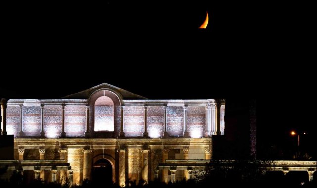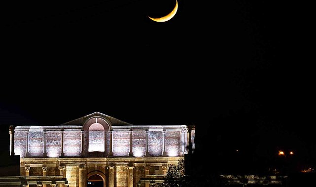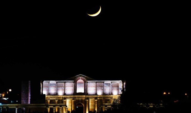 Manisa'nın Salihli ilçesinde bulunan Sardes Antik Kenti'ndeki Gymnasium binası ile ayın hilal hali aynı karede buluştu.