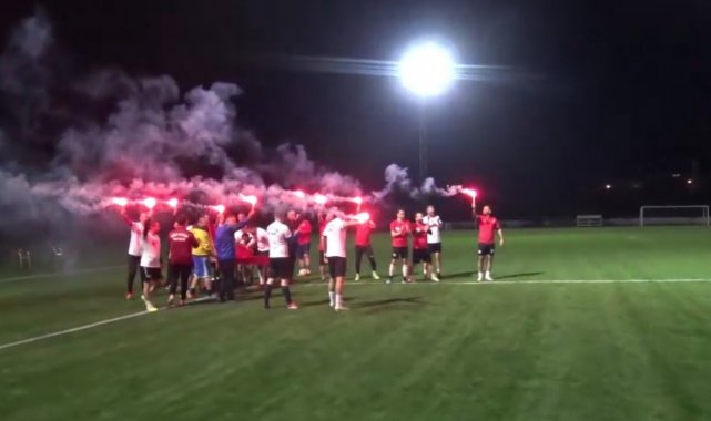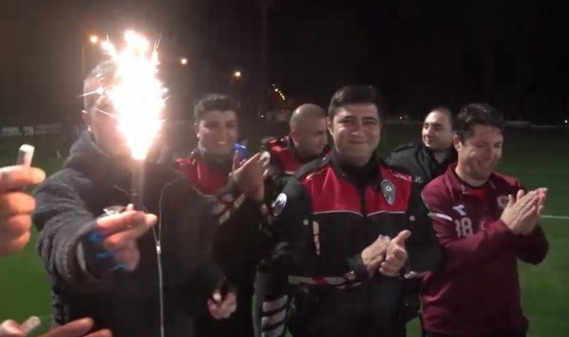 "Antrenmanda kavga var" ihbarına geldiler, meşaleler eşliğinde pastayı görünce şaşırdılar