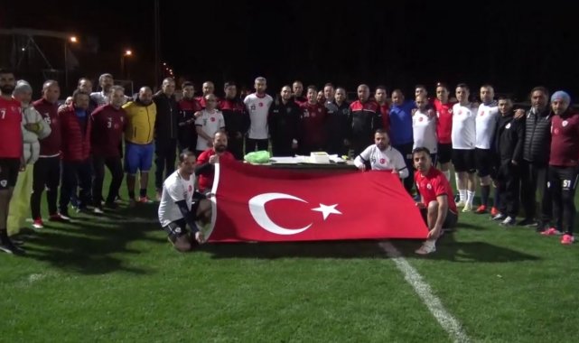 Sporcular önce plan yapıp ardından 112 acil servis ihbar hattını arayıp 'futbol sahasında büyük bir kavga var' diye ihbar ettiler. Kavga ediyormuş gibi görüntü verip, olay yerine gelen polisleri gördüklerinde ise Türk Bayrağını açıp meşalelerle Polis gününü kutladılar.