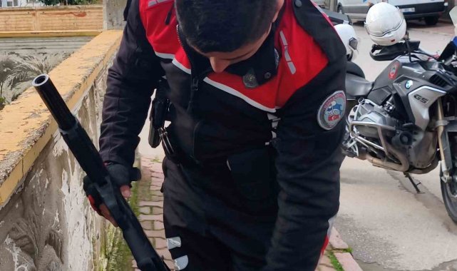 Apartman bahçesine sakladığı pompalı tüfek polisi alarma geçirdi