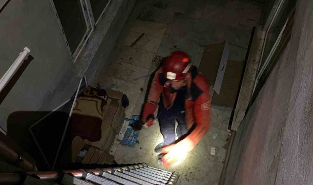 Apartman boşluğuna düşen yavru kedi itfaiye ekiplerince kurtarıldı