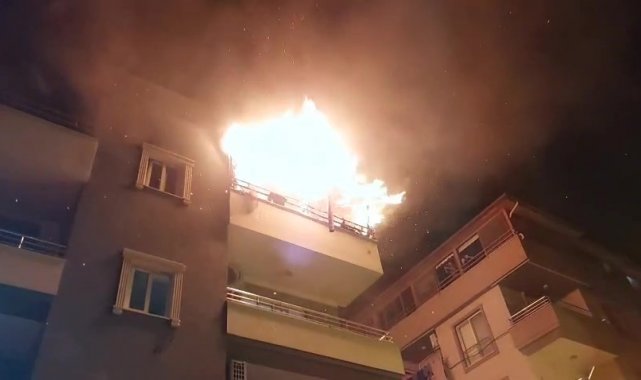Hatay'da dört katlı apartmanın en üst katı alevlere teslim oldu. Yangın, diğer dairelere sıçramamadan söndürüldü