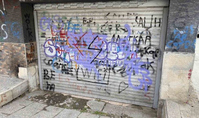 Apartman duvarları ve garaj kapıları vandalların hedefi oldu