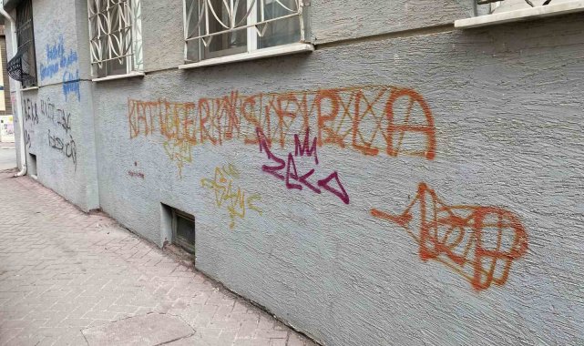 Eskişehir'de bilinmeyen şahısların apartman duvarlarına ve garaj kapılarına yazdığı anlamsız yazılar görüntü kirliliğine neden oldu.