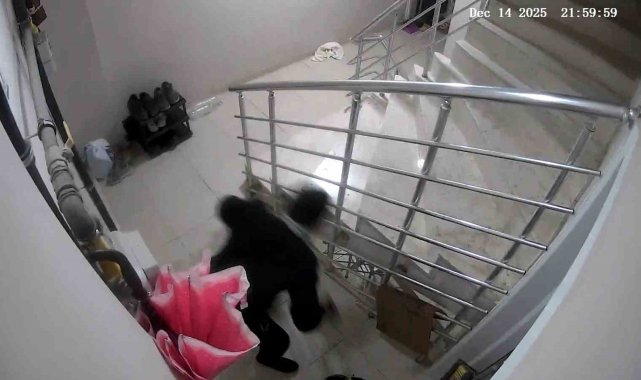 Apartmandan ayakkabı hırsızlığı kameraya yansıdı
