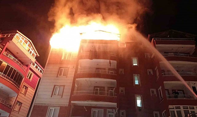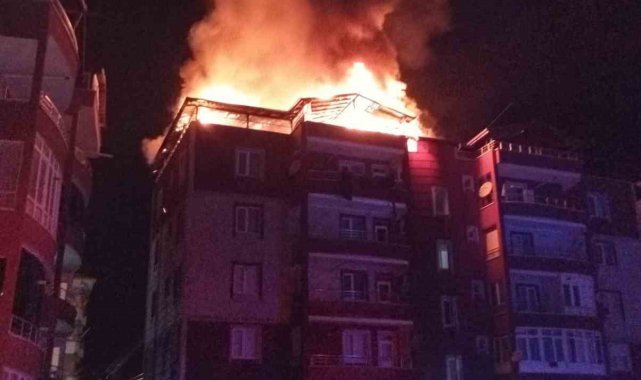 Apartmanın teras katı alevlere teslim oldu