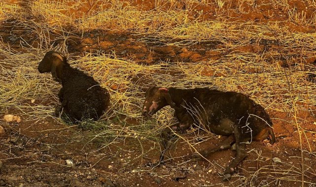500 dönüm ekili alan yandı, 20 keçi telef oldu