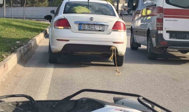 Arabaya bağlanıp iple çekilen motosiklet kaldırıma savruldu: 1 yaralı