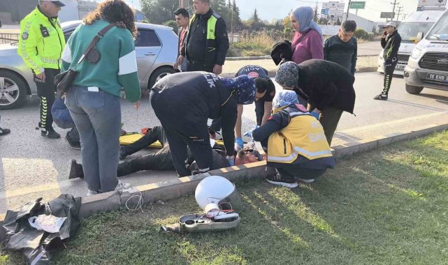Bursa'nın İnegöl ilçesinde otomobilin arkasına arıza yaptığı için bağlanıp çekilen motosiklet devrilerek kaldırıma çarptı, sürücüsü yaralandı.