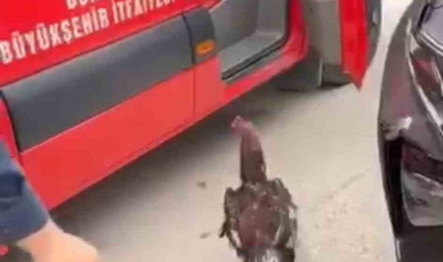 Olay, Gemlik ilçesinde meydana geldi. Aracını çalıştıracağı sırada motordan sesler geldiğini fark eden sürücü, durumu 112'ye bildirdi. İhbar üzerine olay yerine Bursa Büyükşehir Belediyesi itfaiye ekibi sevk edildi. Motor kısmını açan ekipler, kedi beklerken karşılarında horoz gördü. Aracın motor bölümüne sıkışan horoz, itfaiye ekiplerinin müdahalesiyle kurtarıldı. Kurtarılma anı amatör kameraya yansıdı.