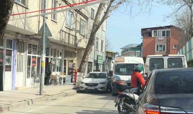 Bursa'da iki şeritli yola aracını park edip giden sürücü, metrelerce uzayan araç trafiğine neden oldu. Araç sahibinin uzun süre gelmemesi nedeniyle sürücüler sitem etti.