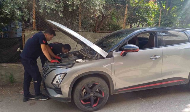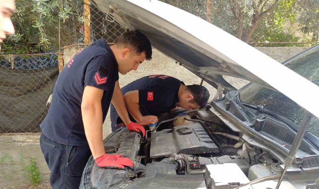Aracın motoruna sıkışan yavru kedi kurtarıldı
