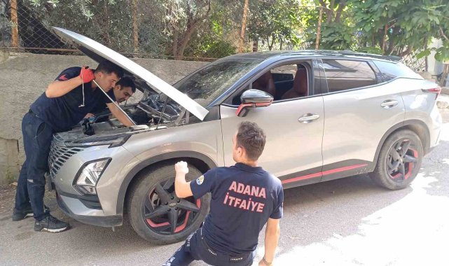 Adana'da bir otomobilin motor kısmına sıkışan yavru kedi, itfaiye ekiplerinin çalışmasıyla kurtarıldı.