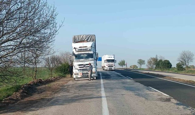 Tekirdağ'ın Muratlı ilçesinde aracından inen tır sürücüsüne arkadan gelen bir otomobil çarptı. Yaralanan sürücü hastaneye kaldırıldı.