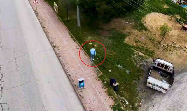 Sürücünün bu hareketleri, polis dronunun kamerasıyla anbean kayıt altına alındı. Bir süre çevrede dolaşan sürücü, dronla takip edildiğinden habersiz şekilde aracının yanına geri döndüğünde karşısında trafik ekiplerini buldu. Yapılan kontrolde sürücünün ehliyetsiz olduğu belirlendi.
