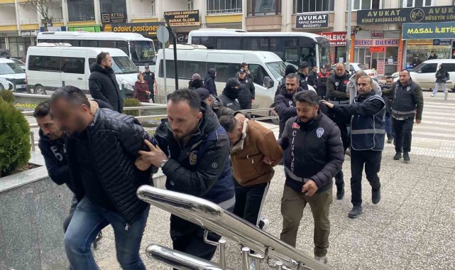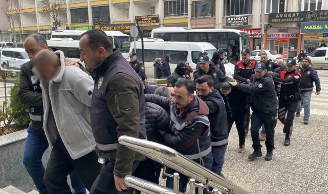 Gözaltına alınan 14 şüpheli, emniyetteki işlemlerin ardından Çorum Adliyesi'ne sevk edildi.