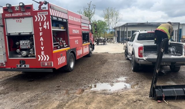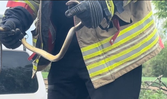 Olay, Kazukoğlu Mahallesi'nde meydana geldi. Alınan bilgilere göre, bölgede inşaat şantiyesine malzeme getiren Orhan Kılıç, aracının bagaj kısmında bir yılan olduğunu fark etti. Durumu 112 Acil Çağrı Merkezine ileten Kılıç'ın yardımına Düzce Belediyesi İtfaiye Müdürlüğü ekipleri koştu. 3530. Sokak üzerindeki şantiyeye gelen ekipler pikap aracın bagaj kısmında yılanı çıkartmak için çalışma başlattı. Delikler arasında sürekli hareket ederek kaçan yılanı kurtarmak için itfaiyeciler uzun uğraş verdi. Bir türlü yılan çıkartılamayınca pikabın bagaj kısmı sökülmeye başlandı. Yapılan çalışmalar sonrasında bagaj kısmında plastik aksam sökülünce yılan, İtfaiye ekiplerinin çalışması ile bulunduğu yerden alındı. Yaklaşık 1,5 metre uzunluğundaki yılan bölgede doğal ortamına salınırken, araç sahibi, "Bir daha gelme arkadaşım" diyerek tebessüm ettirdi. Aracında yılan olduğunu fark edince ekiplerden yardım istediğini belirten Orhan Kılıç, "Aracıma yılan girdi. 112'yi arayıp bilgi verdim ve Düzce İtfaiyesi geldi. Arkadaşlar çalışma yapıyorlar. Yerini tespit ettik. Delikten içeride olduğunu görüyoruz. Bir şekilde onu oradan çıkartmaya çalıştık. Hayvanın zarar görmemesi için araçta bazı parçaları bazı aksamları sökmemiz gerekiyordu. Söktük ve hayvanı bulunduğu yerden çıkartıp doğal hayata saldık" şeklinde konuştu.