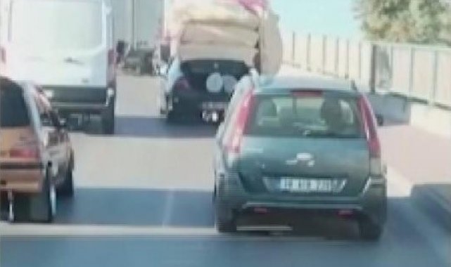 Araçlarına fazla yük atarak trafiği tehlikeye soktular