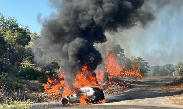 Muğla'nın Milas ilçesinde seyir halindeki bir otomobilde çıkan yangın ormanlık alana sıçrarken, alevler ekiplerin hızlı müdahalesi ile büyümeden kontrol altına alındı.