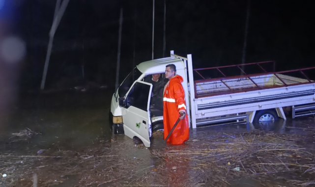 112 Acil çağrı Merkezine gelen 'Ilıca Mahallesi Cezaevi yolunda aracıyla suda mahsur kalma' ihbarı Antalya Büyükşehir Belediyesi İtfaiyesi Manavgat Birimi ve Manavgat İlçe Jandarma Komutanlığı Kumköy Jandarma Karakolu ekiplerini alarma geçirdi.