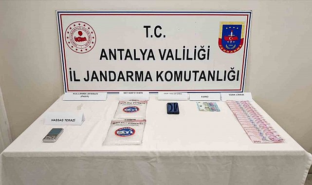 Manavgat ilçesinde, Antalya İl Jandarma Komutanlığı tarafından Manavgat Cumhuriyet Başsavcılığı'nın talimatları doğrultusunda, uyuşturucuyla mücadele kapsamında 1 şüpheli şahsın aracında arama yapıldı. Jandarma ekipleri tarafından araçta yapılan aramada 1 kilo 185 gram metamfetamin, 1 adet hassas terazi, 1 adet kullanma aparatı ve suçtan elde edildiği değerlendirilen nakit para ele geçirildi.