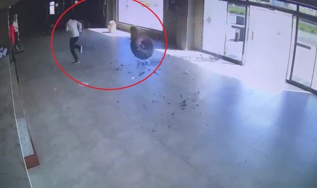 Kopan teker Rus turistin peşinden mağazaya girdi