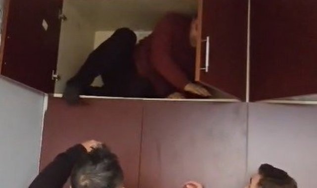 Konya'da 49 farklı suçtan aranan şahıs, polis ekiplerince saklandığı evde bulunan gardırobun üst kısmında battaniyenin altında yakalandı.