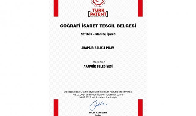 Malatya'nın Arapgir ilçesinin mutfak kültüründe önemli bir yere sahip olan Arapgir Balıklı Pilavı, Türk Patent ve Marka Kurumu tarafından Coğrafi İşaret Tescil Belgesi alarak tescillendi.