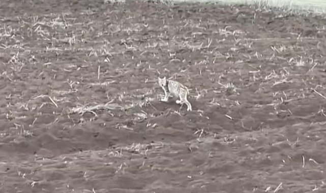 Sivas'ta sürücünün tarlada fark edip görüntülediği yavru vaşak, arazide uzaklaşırken arkasına dönüp bakmasıyla yıllar sonra yeniden gündeme gelen 'sürüsünden ayrılan penguen' belgeselindeki sahneyi hatırlattı.