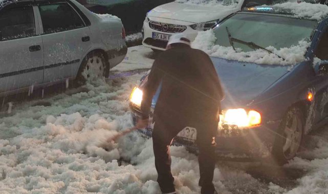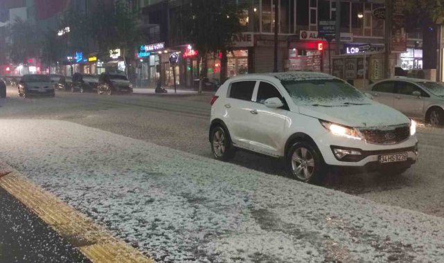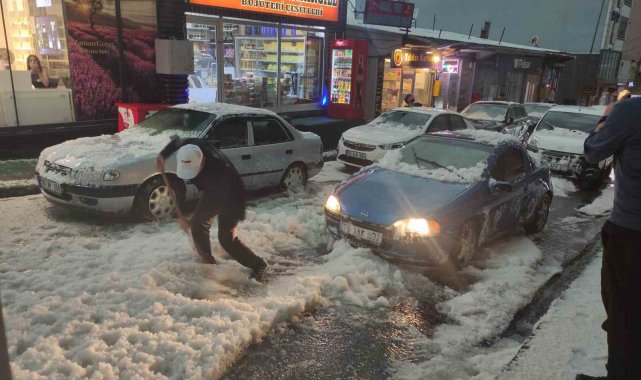 Ardahan'da Mayıs ayının son günlerinde adeta kışı yeniden yaşadı. Akşam saatlerinde başlayan ceviz büyüklüğündeki dolu yağışı her yeri beyaza bürüdü. Trafikte ilerlemekte güçlük çeken araçlar yollarda kaldı.