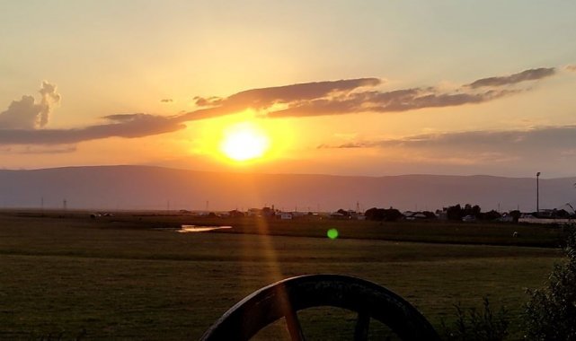 Kura Nehri boyunca uzanan meralar, günün ilk ışıklarıyla birlikte farklı renk tonlarına büründü. Doğal güzelliği ve gün doğumu manzarasıyla Ardahan Ovası seyri doyumsuz manzara sundu. Gökyüzünün kızıllığı ve bulutların oluşturduğu manzara, görenlere unutulmaz bir an yaşattı.