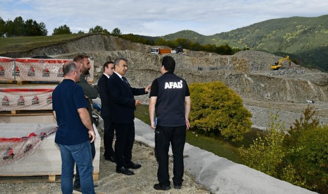 Posof Kaymakamı Mehmet Fatih Kestioğlu ve AFAD İl Müdürü Selim Polat ile birlikte inşaat alanını ziyaret eden Vali Çiçek, yüklenici firma yetkililerinden çalışmaların son durumu hakkında bilgi aldı.