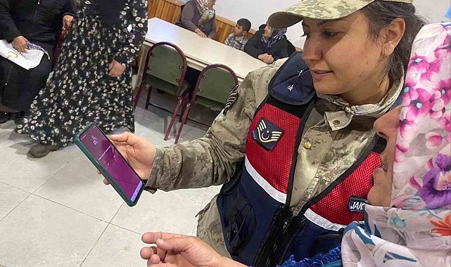 KADES'in cep telefonuna indirilmesi, uygulamanın cep telefonuna indirildikten sonra nasıl kullanılacağı ve sağladığı kolaylıklar hakkında bilgiler veren Jandarma ekipleri, uygulama ile ilgili tanıtım broşürü dağıttı.