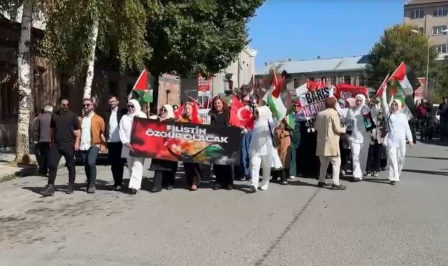 Ardahan'da kadınlar Filistin'e destek yürüyüşü düzenledi.