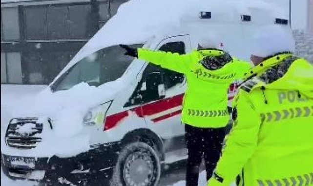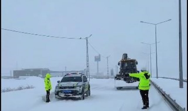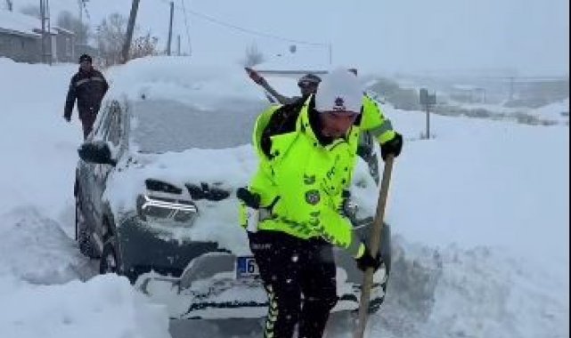 Ardahan'da İl Emniyet Müdürlüğü'ne bağlı Trafik Şube Müdürlüğü ekipleri, kar yağışı ve buzlanma nedeniyle yolda kalan araçların kurtarılmasında sürücülere yardım etti.