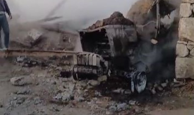 Ardahan'da bir ahırda çıkan yangın sonucu 2 traktör, tahıl ambarı ve balya makinası küle döndü.