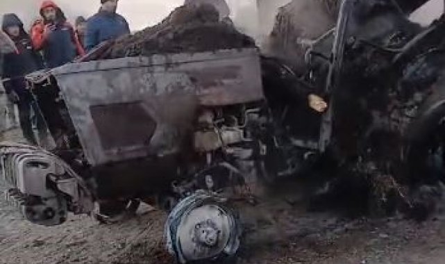 Ardahan'da korkutan yangın: 2 traktör ve ekipmanlar kül oldu