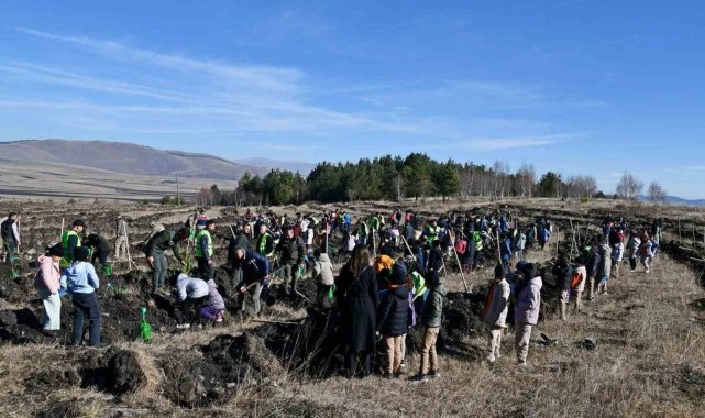 Ardahan'da öğrenciler, "Yeşil Vatan Benim Okulum Geleceğe Çare" projesi kapsamında fidan dikti.