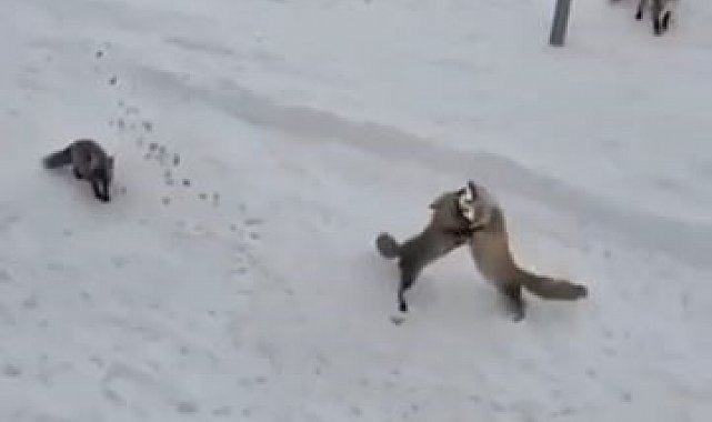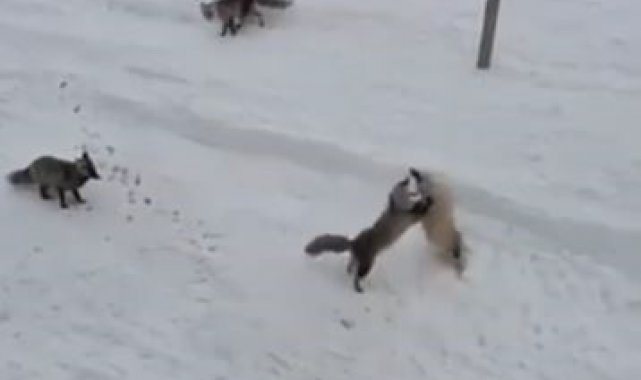 Karayolları personeli tarafından beslenen tilkiler, kendi aralarında ekmek kavgasına düştüler. Uzun bir süre kavga eden tilkiler daha sonra verilen yiyecekleri yemeye başladı. Bu güzel anlar ise cep telefonu ile kayda alındı.