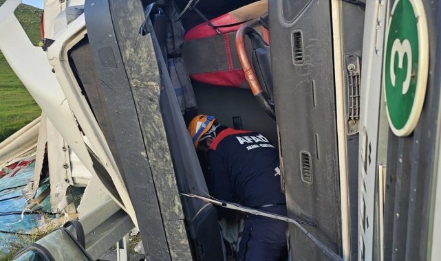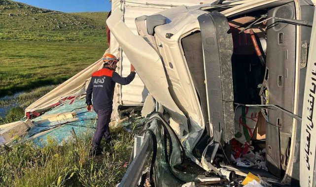 Ardahan-Göle karayolunda devrilen tırın sürücüsü yaralandı.