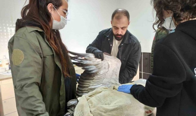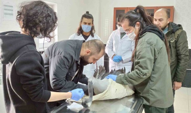 Burada, veteriner hekim tarafından bakım ve tedavi altına alınan kuş, iyileşmesine müteakip yeniden doğal yaşam ortamına salınacak.