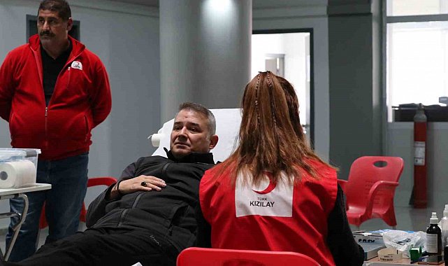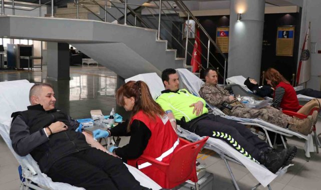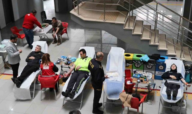 Ardahan İl Emniyet Müdürü Gökalp Şener, personeli ile birlikte Türk Kızılay'ına kan bağışında bulundu.