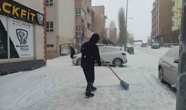 Gece saatlerinde etkili olan kar yağışının ardından sabahın erken saatlerinde cadde ve sokaklar beyaza büründü. Kent merkezinde kar kalınlığının artmasıyla birlikte esnaf, işyerlerinin önünde biriken karı temizlemek için harekete geçti.