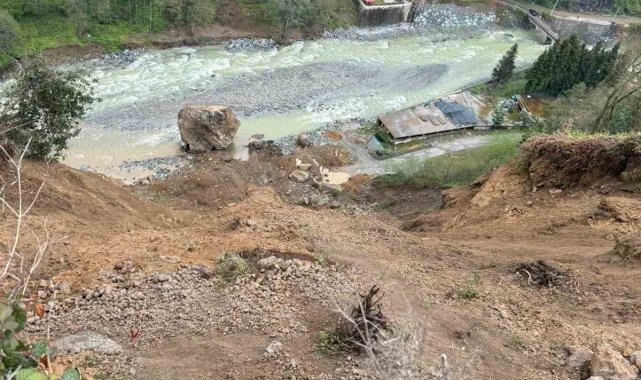 Rize'nin Ardeşen ilçesinde meydana gelen heyelanda, büyük bir kaya kütlesi dere yatağına indi.