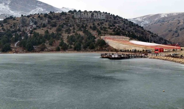 Yüksek kesimlerde hava sıcaklığının sıfırın altında 10 dereceye kadar düştüğü kentte, 2 bin 970 rakımda ve Munzur Dağları'nın eteğinde yer alan Ardıçlı Gölü'nün yüzeyi tamamen buz tuttu. Derinliği yaklaşık 5 metre olan göl, kışın etkisiyle kartpostallık görüntüler oluştururken, bölgeyi ziyaret eden vatandaşlar manzaranın eşsiz olduğunu ifade etti. Ergan Dağı Kayak Merkezi'nin hemen yanında yer alan göl, fotoğraf tutkunlarının da uğrak noktası haline geldi. Ardıçlı Gölü'ndeki kış güzelliği havadan görüntülendi.
